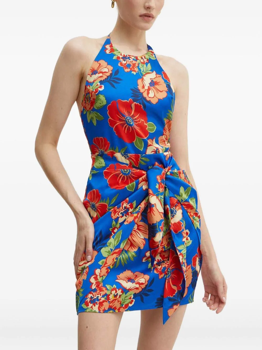 halter-neck floral-print midi dress Highlights - Blue - Floral print - Halter neck - Tie detail - Open back Imported Composition Polyester 96%, Elastane 4% Washing instructions Read Manufacturer Guidelines