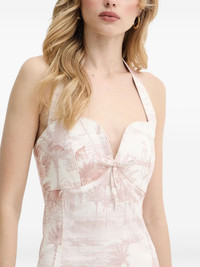 halter-neck ruffled mini dress Highlights - Off-white - Palm tree print - Ruffled hem - Sweetheart neckline - Halter neck - Bow detail Imported Composition Cotton 92%, Elastane 8% Washing instructions Read Manufacturer Guidelines
