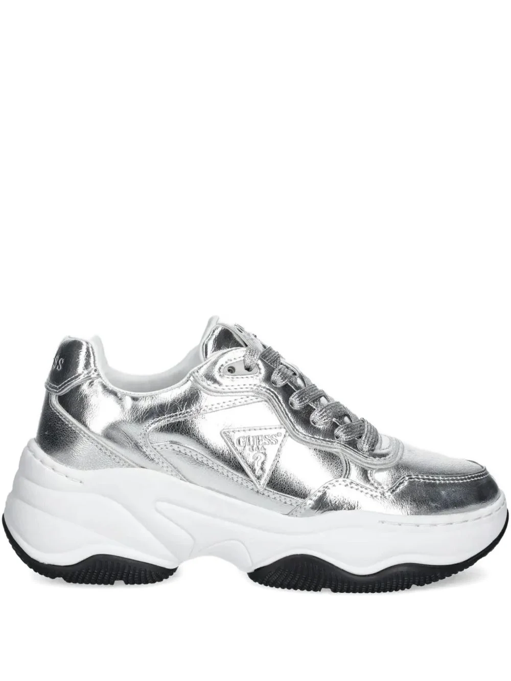 Hapyy metallic-effect leather chunky sneakers Highlights - Silver - Logo detailing - Lace-up fastening - Padded ankle - Chunky sole Imported Composition Sole: Rubber 100% Outer: Polyurethane 59%, Leather 41% Lining: Polyester 100%