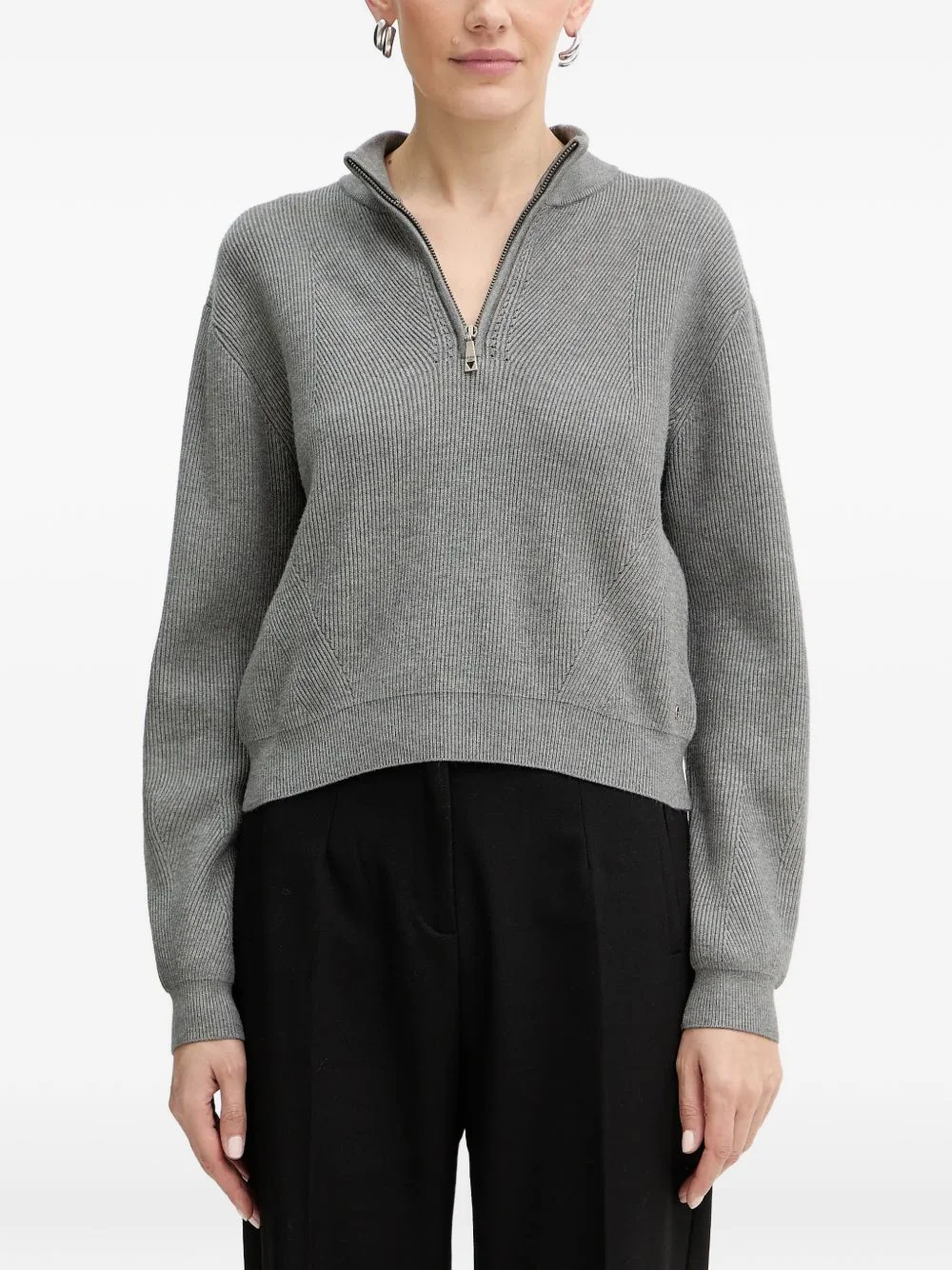 Harley zip ribbed sweater Highlights - Grey - Ribbed knit - Zip closure - Long sleeves Imported Composition Viscose 50%, Polyester 28%, Polyamide 22% Washing instructions Read Manufacturer Guidelines