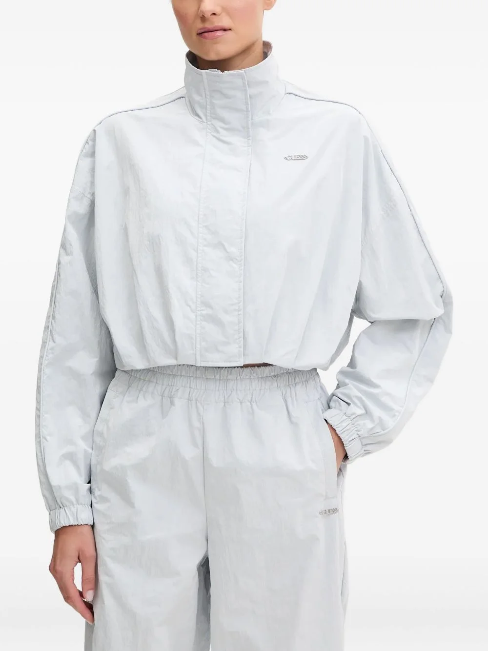 high-neck cropped jacket Highlights - White - Cropped length - High neck - Silver-tone logo - Zip fastening - Long sleeves Imported Composition Outer: Polyamide 58%, Polyester 42% Lining: Polyester 100% Washing instructions Read Manufacturer Guidelines