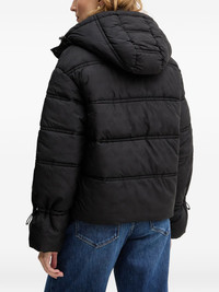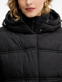 hooded embossed jacket Highlights - Black - Embossed design - Drawstring detailing to cuffs - Hood - Front pockets - Zip fastening Imported Composition Polyester 100% Washing instructions Machine Wash