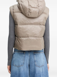 hooded quilted gilet light brown quilted design hooded neckline triangle logo plaque front zip fastening press-stud fastening Imported Composition Fabric 100% Washing instructions Read Manufacturer Guidelines