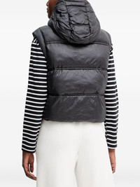 hooded quilted gilet Highlights - Black - Quilted design - Hooded neckline - Triangle logo plaque - Zip fastening - Snap button closure Imported Composition Fabric 100% Washing instructions Read Manufacturer Guidelines