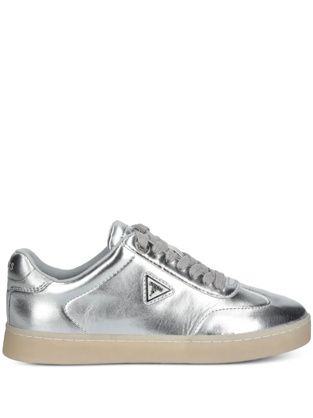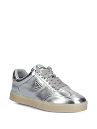 Jazlie metallic-effect leather low-top sneakers Highlights - Silver - Triangular logo detail - Lace-up fastening - Rubber sole - Padded ankle Imported Composition Sole: Rubber 100% Outer: Leather 100% Lining: Fabric 100%