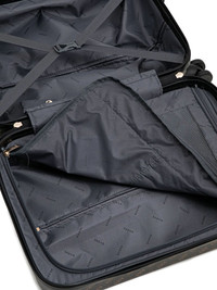 Jesco 4G suitcase Highlights - Black - All-around zip fastening - Telescopic handle - Partitioned compartment - Four wheels Imported Composition Outer: Acrylonitrile Butadiene Styrene (ABS) 92%, Acrylic 8% Lining: Polyester 100% SIZE & FIT Measurement DEPTH 8.66 in(22 cm) HEIGHT 21.25 in(54 cm) WIDTH 12.99 in(33 cm)