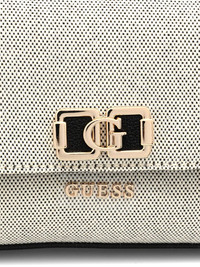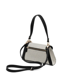 Karnilla logo-detail shoulder bag Highlights - Beige and black - Logo embellishment - Top handle - Detachable shoulder strap - Gold-tone hardware Imported Composition Outer: Cotton 53%, Polyester 39%, Viscose 8% Lining: Polyester 100% SIZE & FIT Measurement DEPTH 2.75 in(7 cm) HEIGHT 5.9 in(15 cm) WIDTH 10.23 in(26 cm)