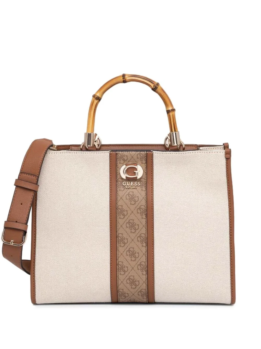 Kerima tote bag Highlights - Beige - Top zip fastening - Signature bamboo top handle - Adjustable detachable shoulder strap - Rear zip fastening Imported Composition Outer: Polyurethane 100%, Cotton 62%, Polyester 31%, Rayon 7% Lining: Polyester 80%, Cotton 20% SIZE & FIT Measurement DEPTH 4.72 in(12 cm) HEIGHT 9.05 in(23 cm) WIDTH 12.99 in(33 cm)