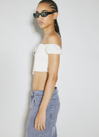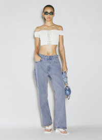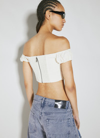 Lace corset crop top with rear zip fastening. - Sqauere neck - Rear zip fastening - Short sleeves - Front lace fastening - Rear ruched panel - 100% Polyester. Machine wash cold - Color: White - Code: W3BH09RA2X0