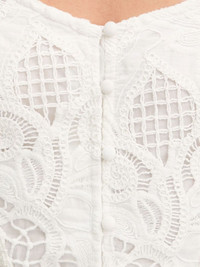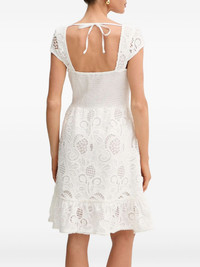 lace-insert button-front mini dress Highlights - White - Button fastening - Square neck - Short sleeves - Ruffled hem - Embroidered details Imported Composition Polyester 100% Washing instructions Read Manufacturer Guidelines