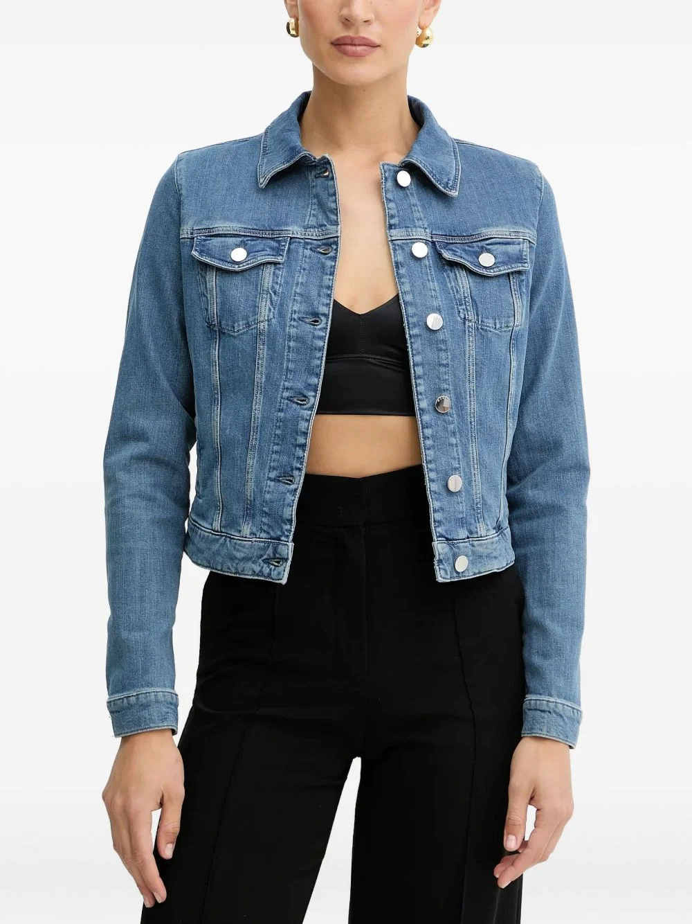 lace-up denim jacket Highlights - Light blue - Denim - Lace-up back detail - Button fastening - Classic collar - Flap pockets Imported Composition Cotton 99%, Spandex/Elastane 1% Washing instructions Read Manufacturer Guidelines