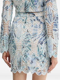leaf-print embroidered skirt Highlights - Light blue - Leaf print - Scalloped hem - Embroidered details - Fitted waist Imported Composition Outer: Recycled Polyester 100% Lining: Polyester 100% Washing instructions Hand Wash