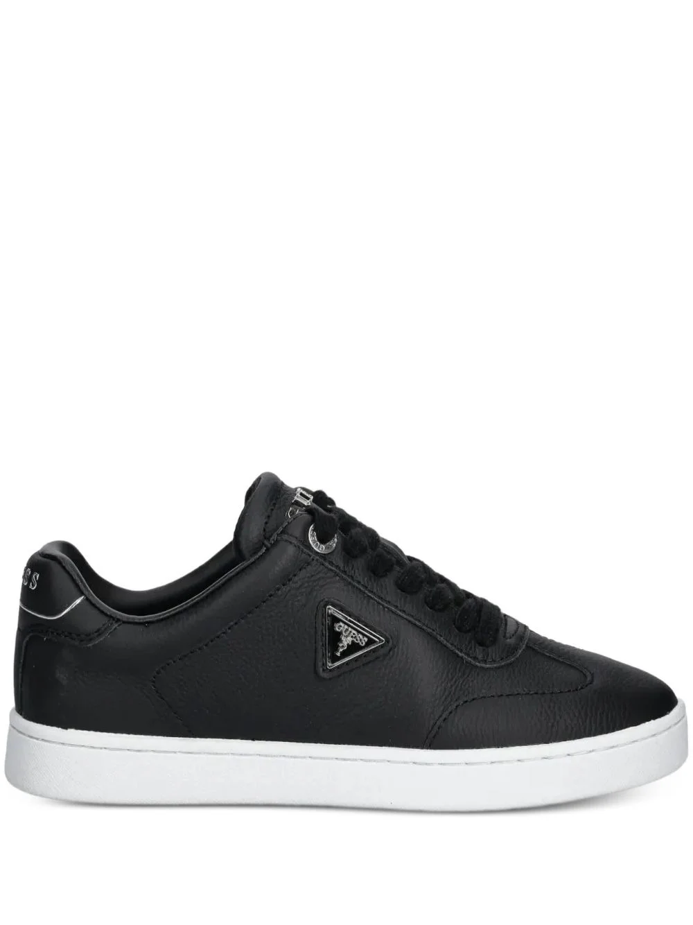 leather triangle-logo sneakers Highlights - Black - Logo detail - Lace-up fastening - Padded ankle - Contrasting white sole Imported Composition Lining: Polyurethane 100%, Fabric 100% Sole: Rubber 100% Outer: Calf Leather 100%