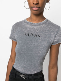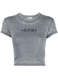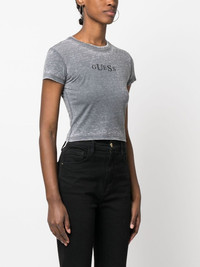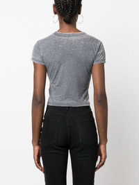 logo-print cropped T-shirt Highlights - Medium grey - Cotton blend - Logo print at the chest - Crew neck - Short sleeves - Straight hem - Cropped Imported Composition Cotton 50%, Polyester 50% SIZE & FIT Model measurements Height 5 ft 10 in(1.77 m) Bust/Chest 29.92 in(76 cm) Hips 34.25 in(87 cm) Waist 23.62 in(60 cm) FittingInformation Designed for a slim fit that sits just away from the body offering a close yet comfortable fit Made from a midweight non-stretch fabric, this piece offers minimal elasticity when worn This piece fits true to size – take your usual size Washing instructions Machine Wash