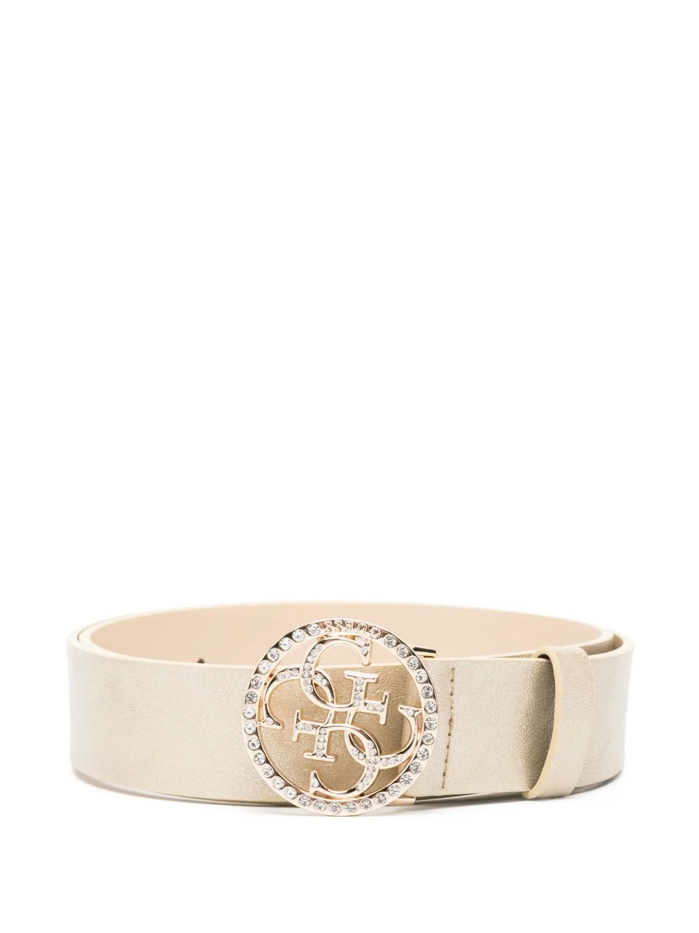 logo-buckle belt Highlights - Gold-tone - Pin-buckle fastening - Adjustable fit - Punched holes - Rhinestone embellishment Imported Composition Outer: Polyester 100%, Polyurethane 100% Lining: Polyester 86%, Viscose 14% SIZE & FIT Measurement Minimum Length 30.31 in(77 cm) TOTAL LENGTH 38.18 in(97 cm) WIDTH 1.18 in(3 cm) Washing instructions Do Not Wash/Do Not Dry Clean