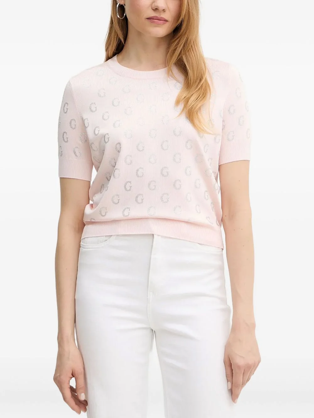 logo-embellished short-sleeves top Highlights - Pink - Short sleeves - Round neck - Embellished-logo pattern - Fine knit Imported Composition Viscose 78%, Polyamide 22% Washing instructions Hand Wash