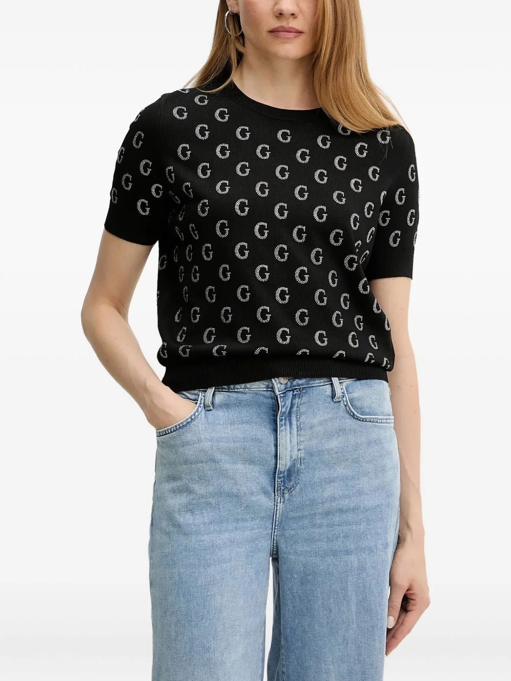 logo-embellished T-shirt Highlights - Black - Short sleeves - Round neck - Embellished g logo Imported Composition Viscose 78%, Polyamide 22% Washing instructions Read Manufacturer Guidelines