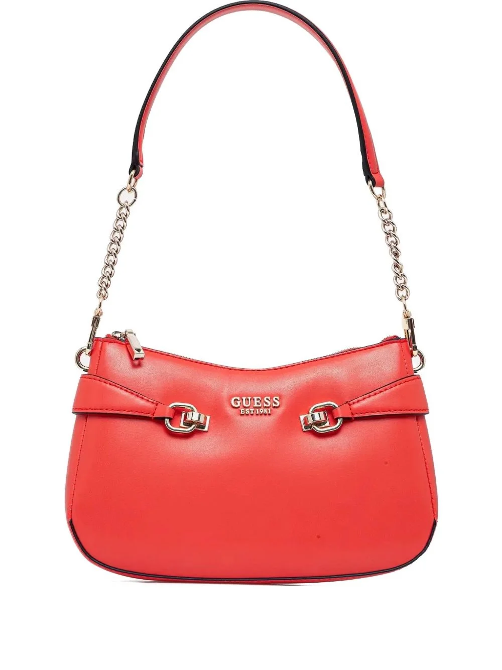 logo-lettering shoulder bag Highlights - Red - Silver-tone logo lettering - Rear zip-fastening pocket - Top zip fastening - Leather and chain-link shoulder strap Imported Composition Outer: Polyurethane 100% Lining: Polyester 100% SIZE & FIT Measurement DEPTH 1.57 in(4 cm) HEIGHT 6.29 in(16 cm) WIDTH 10.23 in(26 cm)