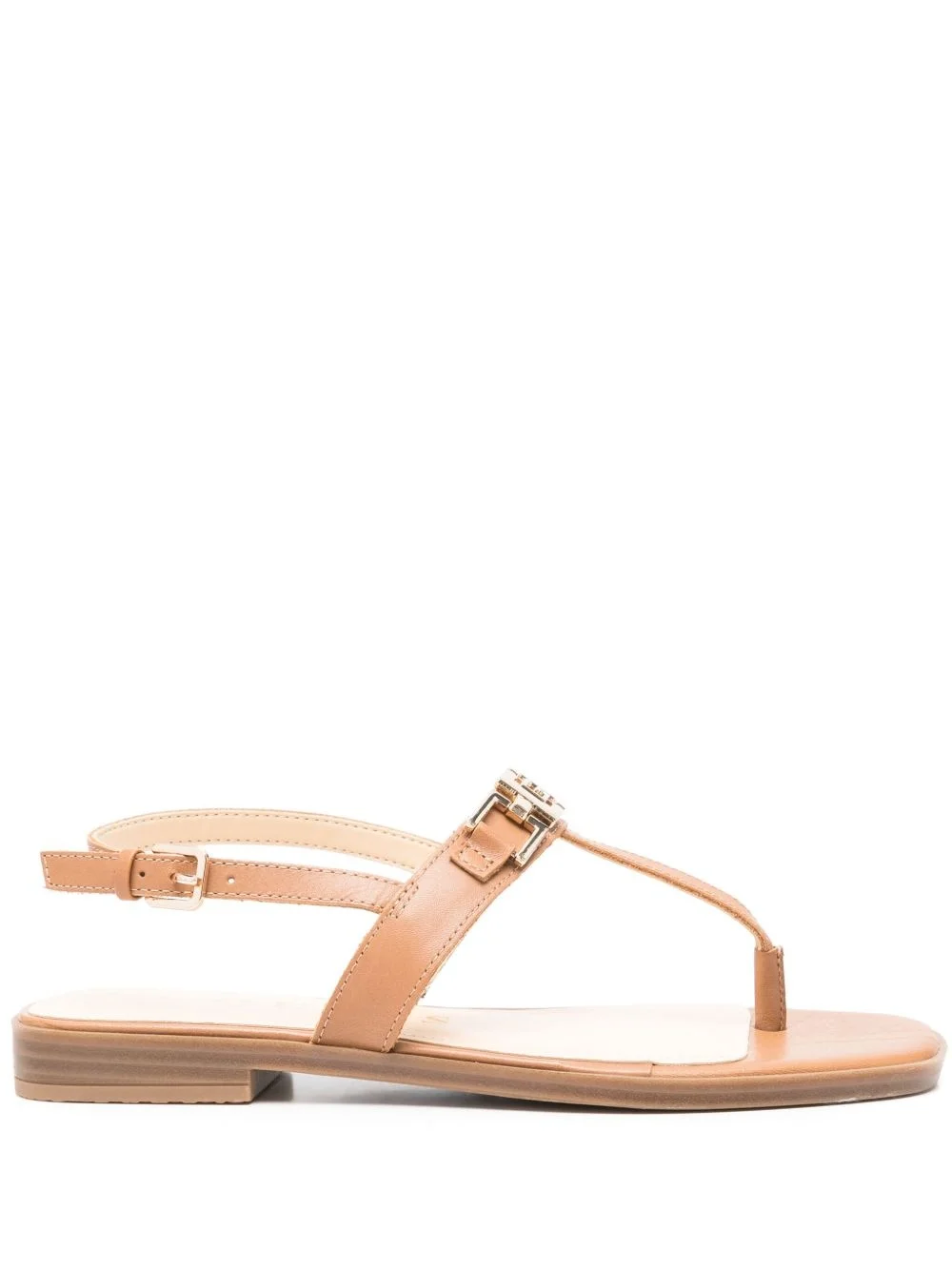 logo-plaque leather sandals Highlights - Camel brown - Side buckle fastening - Thong strap - Branded insole - Rubber sole Imported Composition Outer: Leather 100% Lining: Polyurethane 100% Sole: Rubber 100%