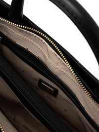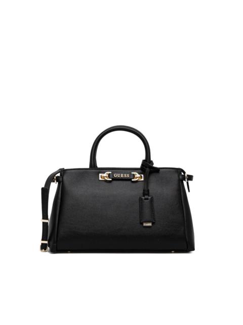 logo-plaque satchel bag Highlights - Black - Gold-tone logo plaque - Two top handles - Detachable shoulder strap - Zip fastening - Clasp detailing Imported Composition Lining: Polyester 100% Outer: Artificial Leather 100% SIZE & FIT Measurement DEPTH 3.93 in(10 cm) HEIGHT 7.87 in(20 cm) WIDTH 7.87 in(20 cm)