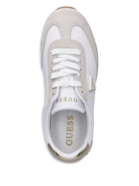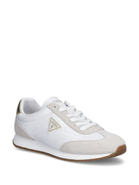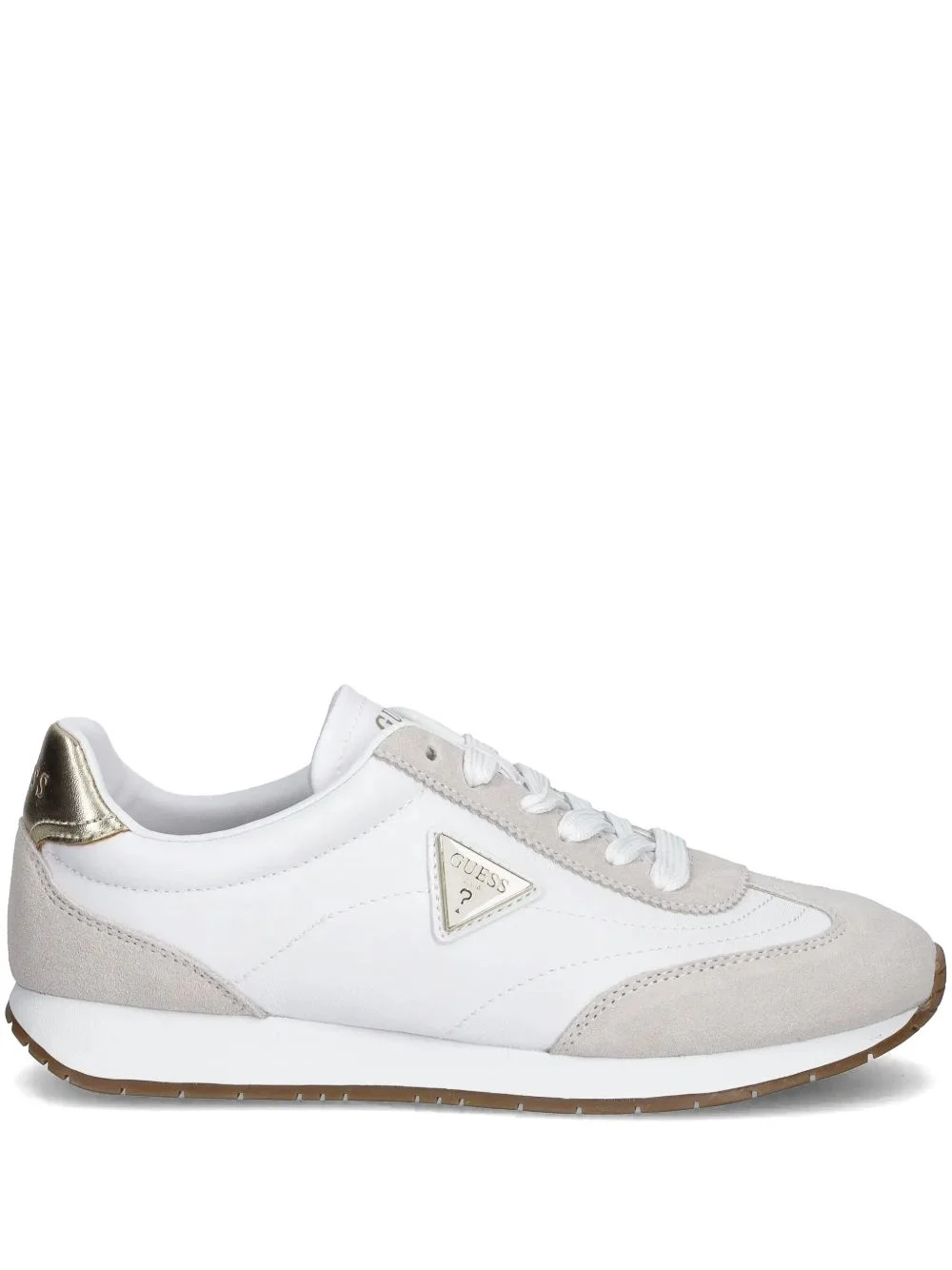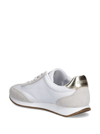 logo-plaque sneakers Highlights - White - Front lace-up fastening - Contrasting branded heel counter - Round toe - Flat rubber sole Imported Composition Lining: Fabric 100% Outer: Fabric 100%, Calf Suede 100% Sole: Rubber 100%