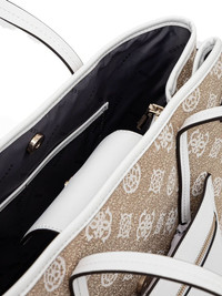 logo-plaque tote bag Highlights - Beige - Embossed logo pattern - Dual top handles - Contrasting trim - Logo plaque Imported Composition Outer: Polyester 100%, Polyurethane 100% SIZE & FIT Measurement DEPTH 6.69 in(17 cm) HEIGHT 13.77 in(35 cm) WIDTH 14.96 in(38 cm)
