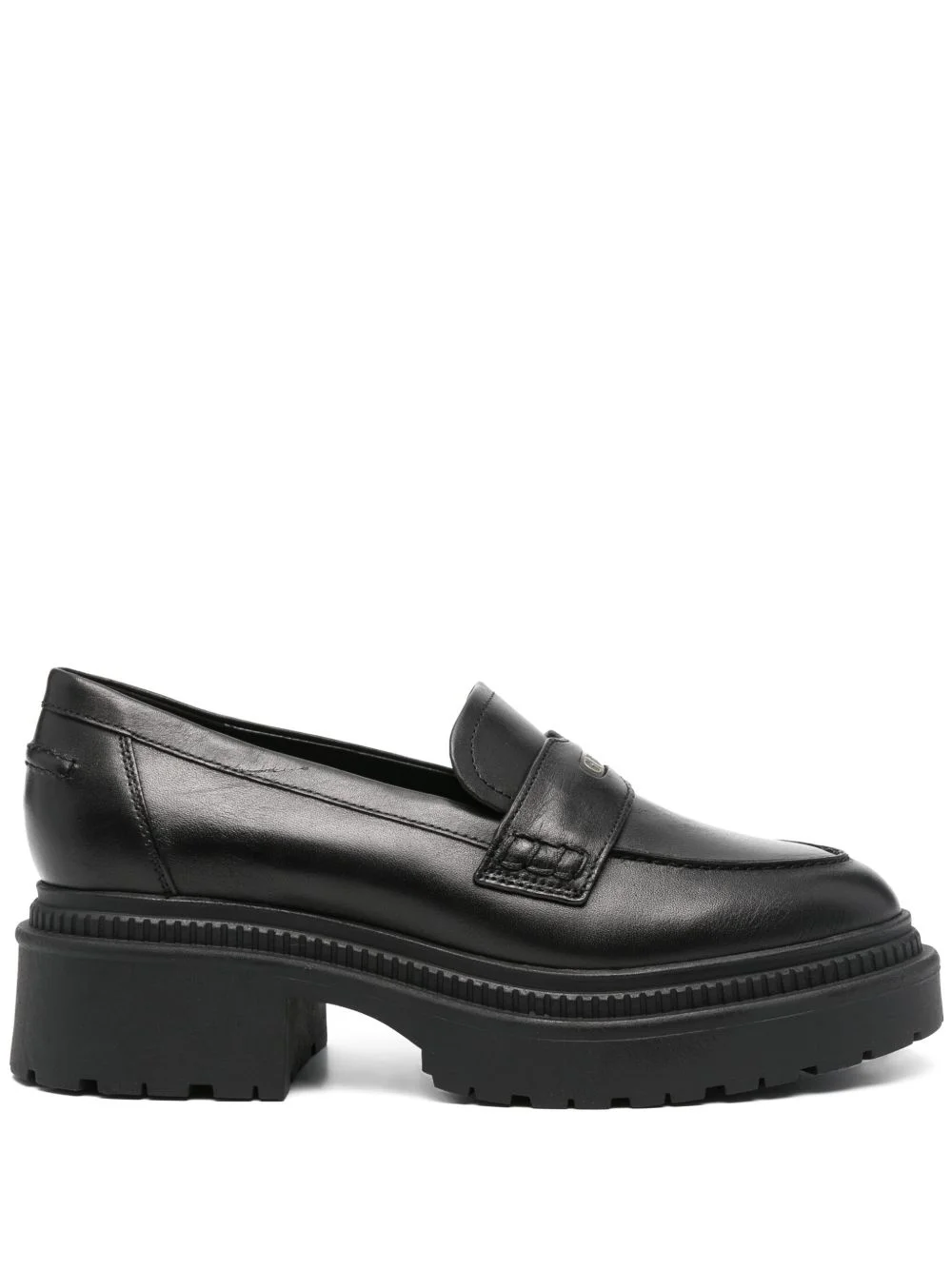 logo-stamp loafers Highlights - Black - Slip-on style - Almond toe - Branded leather insole - Chunky rubber lug sole Imported Composition Leather 100% SIZE & FIT Measurement HEEL 1.96 in(5 cm) Sole height 1.37 in(3.5 cm)