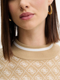 long-sleeve mini dress Highlights - Beige - Patterned - Long sleeves - Round neck - Ribbed cuffs - Ribbed hem Imported Composition Fabric 100% Washing instructions Read Manufacturer Guidelines