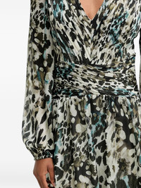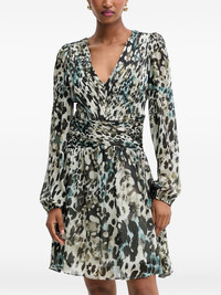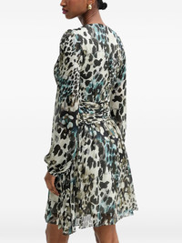 long-sleeves v-neck mini dress Highlights - Beige and black - All-over print - V-neck - Long-sleeves - Gathered detail - Pleated-detail Imported Composition Outer: Recycled Polyester 100% Lining: Recycled Polyester 100% Washing instructions Hand Wash