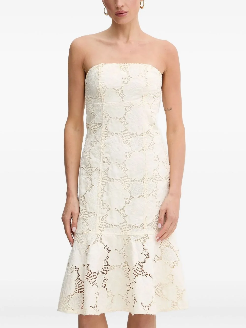Maisy dress Highlights - Off-white - Floral lace - Strapless neckline - Flared hem Imported Composition Fabric 100% Washing instructions Read Manufacturer Guidelines