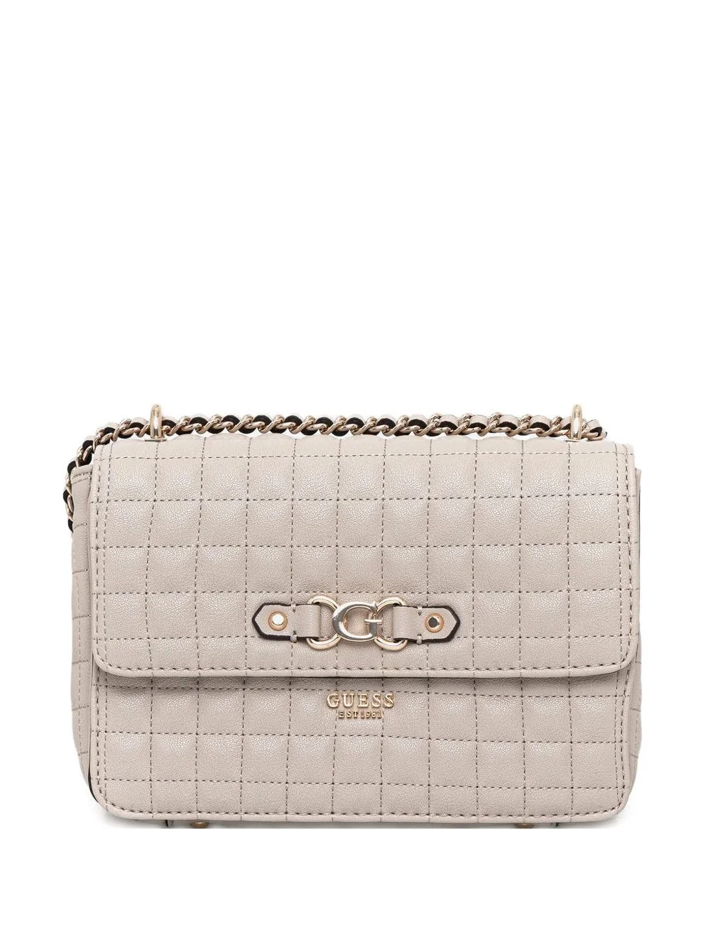 mini quilted chain shoulder bag Highlights - Beige - Quilted - Chain detailing - Gold-tone hardware - Logo plaque - Zip fastening Imported Composition Outer: Polyurethane 100% SIZE & FIT Measurement DEPTH 2.36 in(6 cm) HEIGHT 6.29 in(16 cm) WIDTH 9.05 in(23 cm)
