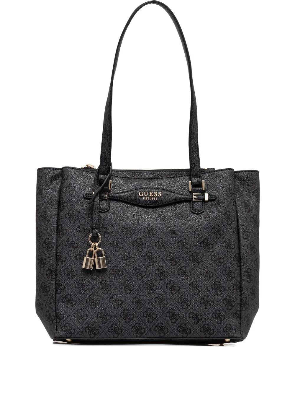 monogram-logo padlock-detail tote bag Highlights - Grey - Monogram-pattern - Padlock-detail - Top handle - Zip-fastening - Gold-tone hardware Imported Composition Outer: Polyurethane 100%