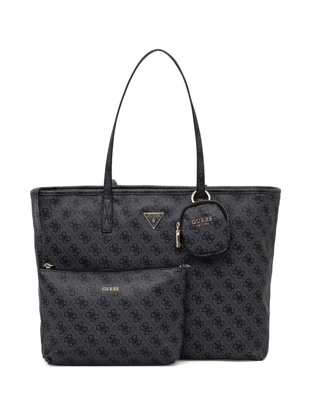monogram-pattern tote bag Highlights - Charcoal grey - Monogram pattern - Two top handles - Front zip pocket - Detachable coin purse - Internal slip pocket Imported Composition Fabric 100%