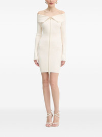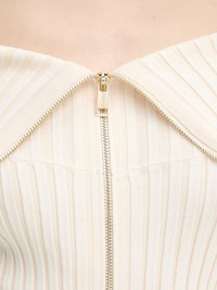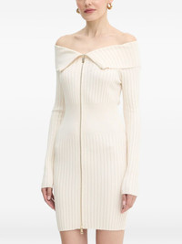 off-shoulder zip mini dress Highlights - Beige - Ribbed knit - Off-shoulder - Long sleeves - Zip fastening Imported Composition Viscose 62%, Polyester 38% Washing instructions Read Manufacturer Guidelines