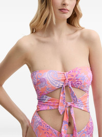 paisley-print cut-out swimsuit Highlights - Peach orange - Paisley print - Cut-out design - Tie detailing - Strapless design - High-leg cut - Be mindful to try on swimwear over your own garments. Imported Composition Polyamide 80%, Elastane 20% Washing instructions Read Manufacturer Guidelines