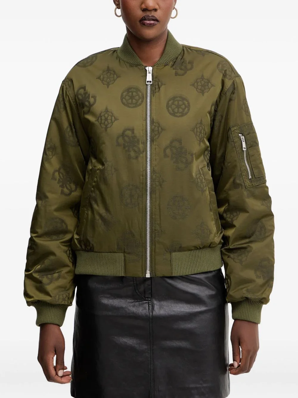 patterned bomber jacket Highlights - Olive green - Patterned - Zip fastening - Ribbed hem - Ribbed cuffs - Front pockets Imported Composition Fabric 100% Washing instructions Read Manufacturer Guidelines