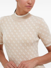 patterned short-sleeve dress Highlights - Cream - Patterned - Short sleeves - High neck - Ribbed trims Imported Composition Fabric 100% Washing instructions Read Manufacturer Guidelines
