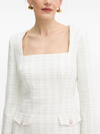 pearl-embellished square-neck mini dress Highlights - White - Check pattern - Faux-pearl embellishment - Square neck - Long sleeves - Flap pockets Imported Composition Polyester 95%, Metallised Fibres 5% Washing instructions Read Manufacturer Guidelines