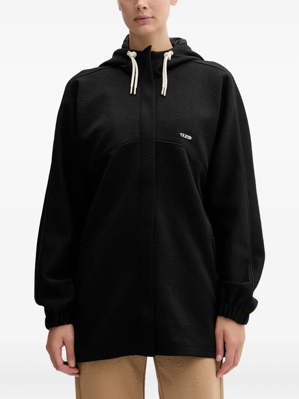 Peony hooded patterned jacket Highlights - Black - All-over pattern - Drawstring hood - Zip fastening - Long sleeves - Gold-tone hardware Imported Composition Polyester 75%, Cotton 23%, Elastane 2% Washing instructions Read Manufacturer Guidelines