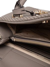 Phaedra woven texture handbag Highlights - Grey - Dual top handles - Detachable shoulder strap - Logo plaque - Charm detail Imported Composition Outer: Polyurethane 100% SIZE & FIT Measurement DEPTH 3.74 in(9.5 cm) HEIGHT 11.02 in(28 cm) STRAP 17.71 in(45 cm) WIDTH 14.96 in(38 cm)