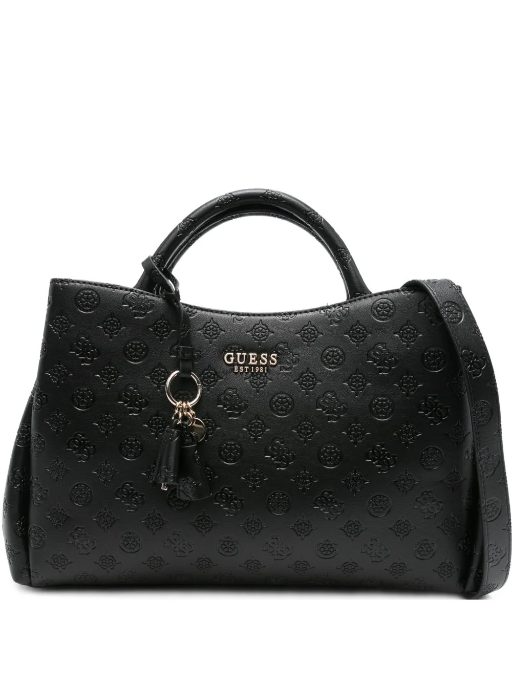 Phoebe 4G Peony logo-plaque tote bag Highlights - Black - Debossed peony logo pattern - Top handles - Zip fastening - Adjustable shoulder strap - Tassel charm Imported Composition Outer: Polyurethane 100% SIZE & FIT Measurement DEPTH 4.33 in(11 cm) HEIGHT 9.84 in(25 cm) STRAP 55.11 in(140 cm) WIDTH 15.35 in(39 cm)