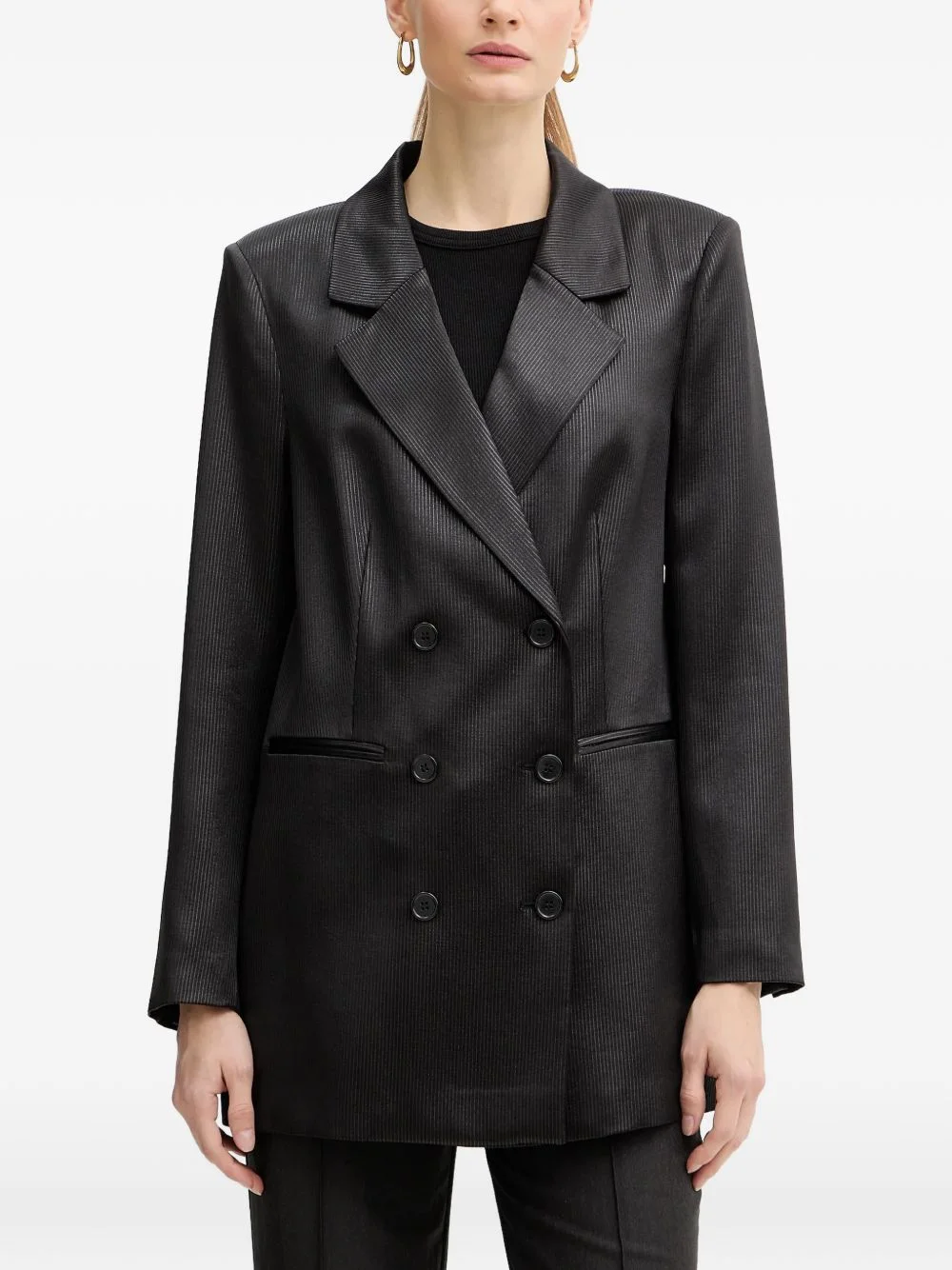 pinstripe double-breasted top Highlights - black - Pinstripe texture - Notched lapels - Double-breasted - Button fastening - Long sleeves - Flap pockets Imported Composition Viscose 58%, Polyester 42% Washing instructions Read Manufacturer Guidelines