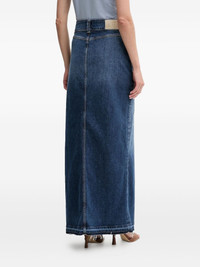 pocket-split denim skirt Highlights - Dark-blue - Front split - Two pockets - Button fastening - Frayed hem - Raw-edge detailing Imported Composition Cotton 79%, Lyocell 20%, Elastane 1% Washing instructions Read Manufacturer Guidelines