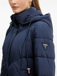 quilted coat Highlights - Blue - Quilted - Hooded - Triangle logo patch - Zip fastening - Drawstrings Imported Composition Fabric 100% Washing instructions Read Manufacturer Guidelines