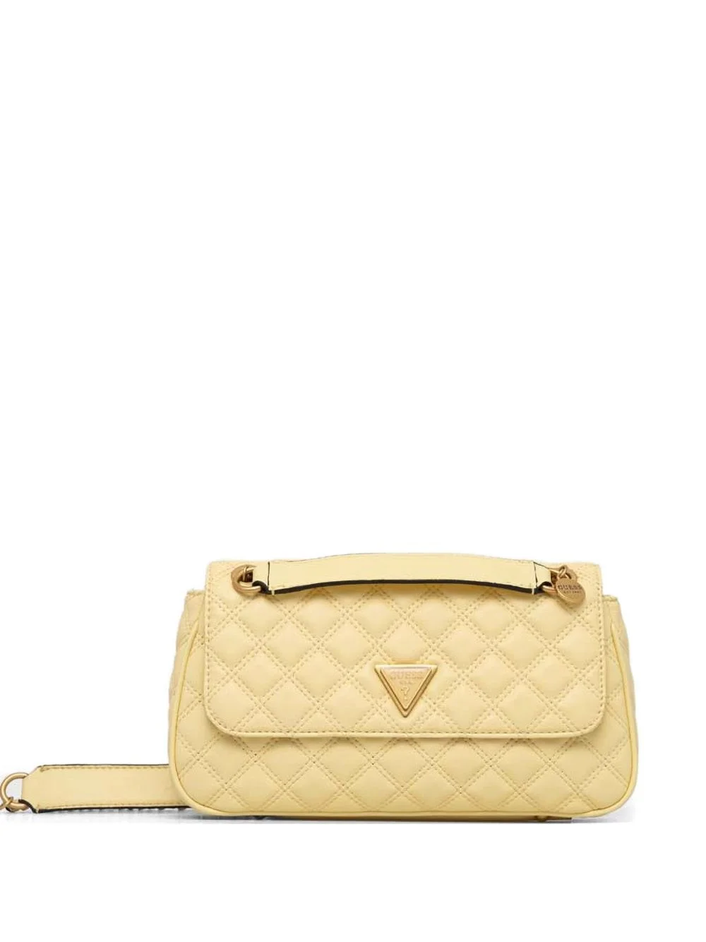 quilted crossbody bag Highlights - Yellow - Quilted - Logo plaque - Foldover top with magnetic fastening - Leather and chain-link shoulder strap Imported Composition Outer: Polyurethane 100% SIZE & FIT Measurement DEPTH 2.36 in(6 cm) HEIGHT 5.11 in(13 cm) WIDTH 11.61 in(29.5 cm)
