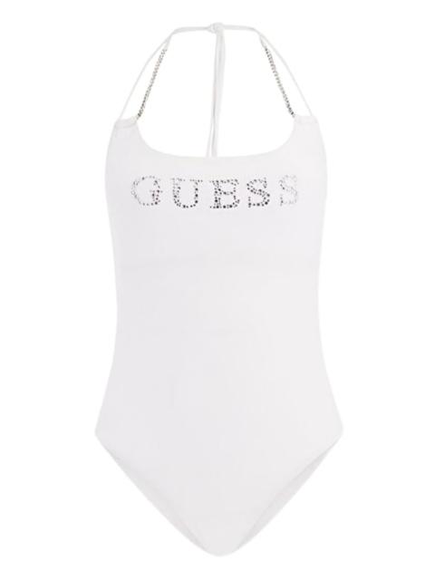 rhinestone-embellished halter swimsuit Highlights - Hot pink - Rhinestone embellishments - Halter neck - Logo lettering - Low back - Tie fastening - Be mindful to try on swimwear over your own garments. Imported Composition Polyamide 85%, Elastane 15% Washing instructions Read Manufacturer Guidelines