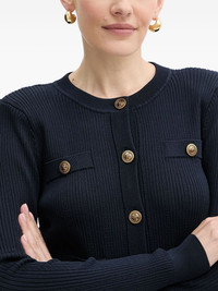 ribbed button-embellished cardigan Highlights - Navy blue - Ribbed knit - Gold-tone buttons - Patch pockets - Round neck - Long sleeves Imported Composition Viscose 63%, Polyamide 37% Washing instructions Read Manufacturer Guidelines