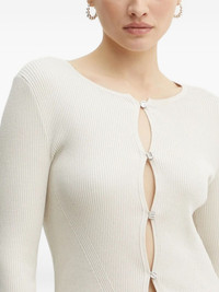 ribbed button-front cardigan Highlights - Beige - Ribbed knit - Button front fastening - Long sleeves - Embellished buttons Imported Composition Viscose 71%, Polyamide 29% SIZE & FIT Measurement LENGTH 22.04 in(56 cm) SLEEVE LENGTH 25.19 in(64 cm) Washing instructions Read Manufacturer Guidelines