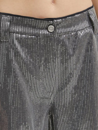 sequin-embellished straight-leg trousers Highlights - Silver - Sequin embellishment - Stripe pattern - Front button fastening - Side slit pockets - Rear flap pockets - Straight leg Imported Composition Polyester 80%, Viscose 16%, Elastane 4% Washing instructions Read Manufacturer Guidelines