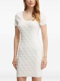 short-sleeve monogram-pattern mini dress Highlights - White - Monogram pattern - Short sleeves - Round neck Imported Composition Fabric 100% Washing instructions Read Manufacturer Guidelines